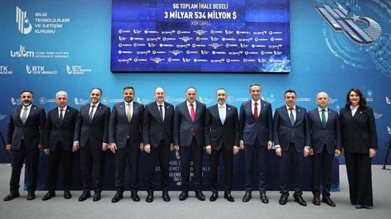 Bakan Uraloğlu, “Üç operatör,700 MHz bandındaki 3 paket frekans için 1 milyar 280 milyon dolar, 3.5 GHz bandındaki 8 frekans paketi için 1 milyar 665 milyon dolar olmak üzere toplamda 2 milyar 945 milyon dolar teklif vererek frekans bantlarını almaya hak kazandı. Böylece ihale bedeli KDV dahil 3 milyar 534 milyon dolara ulaştı. İşletmecilerimiz, yeni yetkilendirmeleri çerçevesinde 1 Nisan 2026 tarihinden itibaren 5G hizmetini sunmaya başlayacak” dedi.