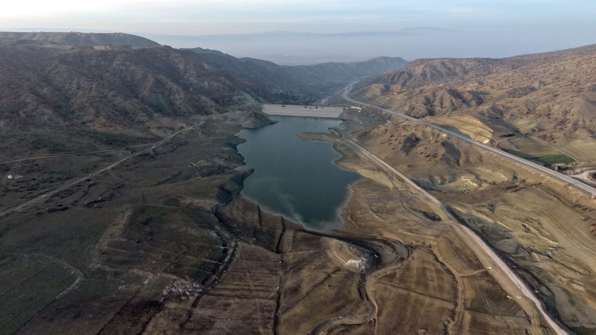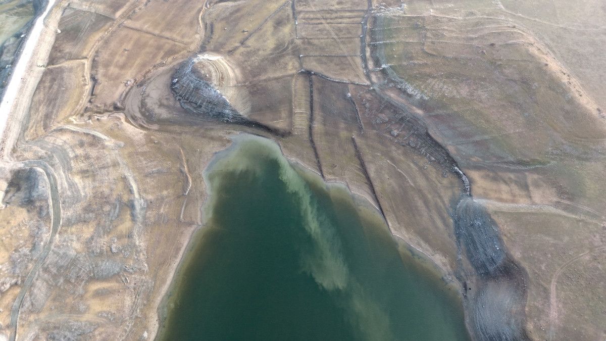 Hatap Barajı’nda havadan çekilen görüntüler ise kuraklığın boyutunu gözler önüne serdi.